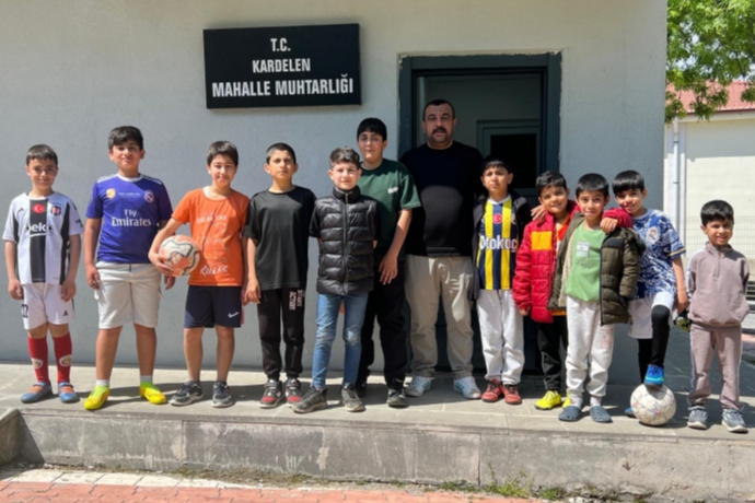 Kardelen Mahallesi’nde muhtarlık koltuğu 23 Nisan’da öğrenciye devredildi; çocuklar kütüphane, spor alanı, okul ve asfalt istedi.