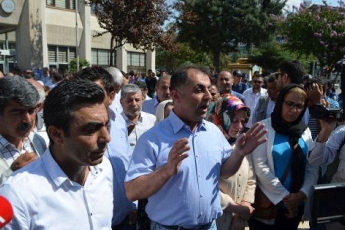 Kayyum atamalarını kınamak amacıyla Batman Belediyesi ve HDP İl Eş Başkanlarının katılımıyla belediye binası önünde, yoğun güvenlik önlemleri altında basın açıklaması yapıldı.