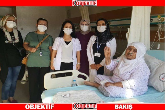 Covid-19 hastası Nura Başakçı (75), 53 gün yattığı Bölge Devlet Hastanesinde şifa bulup sağlığına kavuştu.