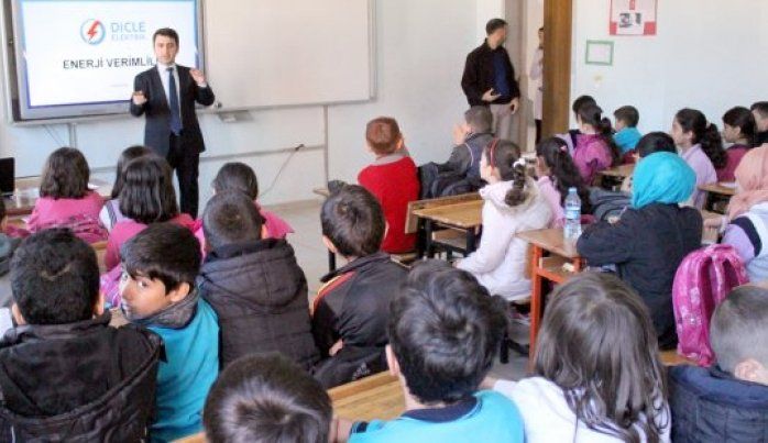 Dicle Elektrik İl Müdürlüklerinde görevli elektrik mühendisleri, il ve ilçe merkezlerinde öğrenimlerine devam eden ortaokul öğrencilerine enerji verimliliğini anlattılar. Hafta boyunca bölge genelinde 100’ün üzerinde okul ziyaret edilirken, 7 binin üzerinde öğrenciye vido gösterileri, karikatürler, slaytlar ve bulmacalar ile enerji verimliliği anlatıldı.