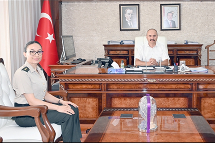 Batman Valisi ve Belediye Başkan Vekili Ekrem Canalp, Batman Askerlik Şube Başkanlığı görevine atanan Üsteğmen Canan Tok Ürkmez’i makamında kabul etti.