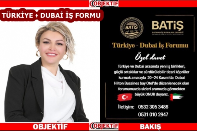 İstanbul – Batman İş İnsanları Derneği (BATİŞ), iş dünyasında yeni ufuklar açacak önemli bir organizasyona hazırlanıyor. Dernek, Türkiye ile Dubai arasında güçlü iş birlikleri, sürdürülebilir ortaklıklar ve kalıcı ticari köprüler kurmak amacıyla 20–24 Kasım 2025 tarihleri arasında Dubai Hilton Business Bay Hotel’de uluslararası bir İş Forumu düzenleyecek.