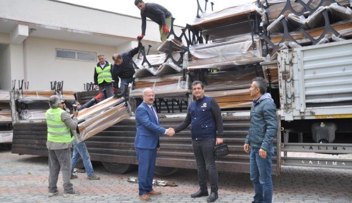 Batman Belediyesi’ne hibe edilen oturma bankaları, kamelya ve piknik masaları Batman Orman İşletme Müdürü Terzan GÜRBÜZ ve Batman Park ve Bahçeler Müdürü Talat KAÇMAZ’ın hazır bulunduğu Batman Belediyesi Park ve Bahçeler Müdürlüğü’nde teslimatı gerçekleştirildi.