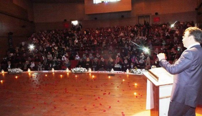 Kur'an-ı Kerim tilavetiyle başlayan etkinliğin açılış konuşmasını yapan Erhan, "Kız çocukların diri diri toprağa gömüldüğü bir cehaletten, anaların baş tacı olduğu, cennetin dahi anaların ayağının altına serildiği muazzam bir medeniyet çıkaran Hz. Muhammed Mustafa'ya sonsuz salat ve selam olsun. Gelecek olan yeni neslin, geleceğimizin Allah'a ve Resulüne bağlı, dinine bağlı, vatanını seven, yaşantılarıyla, yaşam tarzlarıyla, insani ilişkileriyle, ahlakıyla Muhammed-ül Emîn'i örnek ve rehber edinen bir nesil yetiştirmek için çok çaba sarf etmelisiniz." dedi.