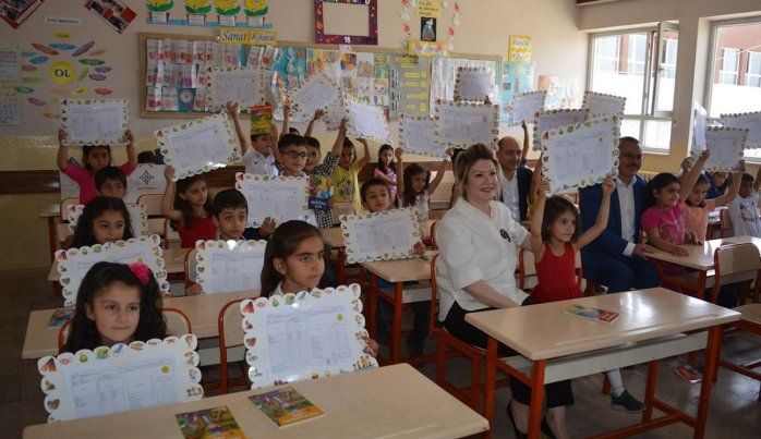 Sınıfta öğrencilere karne dağıtımını Vali Deniz, eşi Olcay Deniz, İl Milli Eğitim Müdürü Kurtaran ve Vali Zeki Şanal İlkokulu Okulu Müdürü ile öğretmenler yaptı. Karne dağıtımıyla beraber yaz tatilinde okumaları için öğrenciler birer kitap hediye edildi.