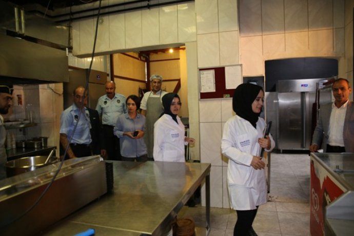 Kafeterya, lokanta ve lahmacun sektöründe hizmet veren işletmelerde; mutfak temizliği, sağlığa uygunluğu, soğuk hava dolaplarının bulunup bulunmadığı, kuru gıdaların istiflenmesi, saklama koşulları, altlarında palet olup olmadığı, ürünlerin son kullanma tarihleri, kullanılan malzemelerin gıdaya uygunluğu, atık yağ durumu, çalışanların hijyeni, giyinme odaları, ilaçlama (haşereye karşı önlemler), kullanılan malzemelerin (kapların) dezenfekte durumu işyeri açma ve çalıştırma ruhsatlarının kontrolüne yönelik denetim gerçekleştirildi.