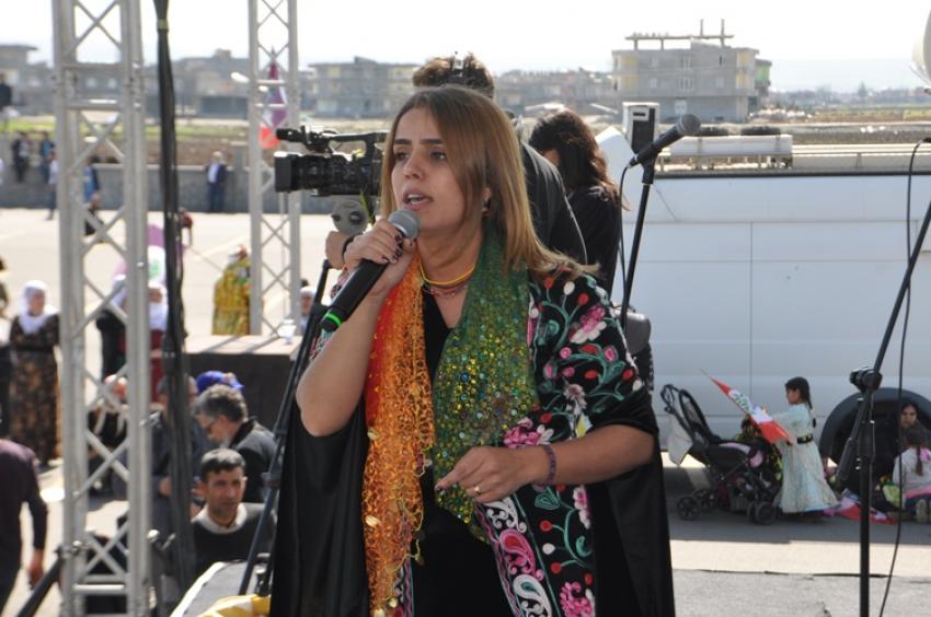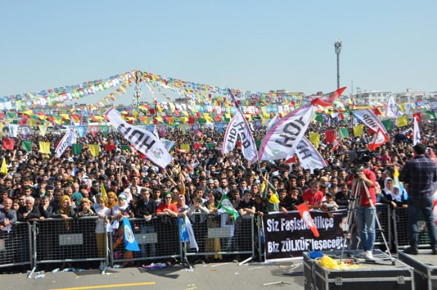 Türkiye'yi yönetme söylemi var karşımızda. Renkleri, dilimizi yasaklamanız, kültürümüzü yasaklamanız hiç bir işe yaramayacaktır. Yine kazanan biz, Türkiye halkları ve direnenler olacaktır. AKP Genel Başkanı bizi hedef gösteriyor. Bütün HDP'lileri terörist ilan etmiş durumdadır. Ama biz biliyoruz bu ülkede terörist olmak çok kolay. Partiler terörist, dolar tutanlar terörist, kadınlar terörist. Galiba bu ülkede hergün birileri terörist ilan ediliyor. Ama biz 31 Mart'ta bunun cevabını vereceğiz.