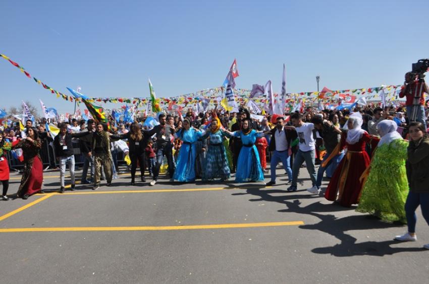 Yeni otogar yanındaki alanda kutlanan Newroz bayramına, binlerce kişi katıldı. Kadın ve erkeklerin yöresel kıyafetleriyle katıldığı kutlamalar, renkli görüntülere sahne oldu.