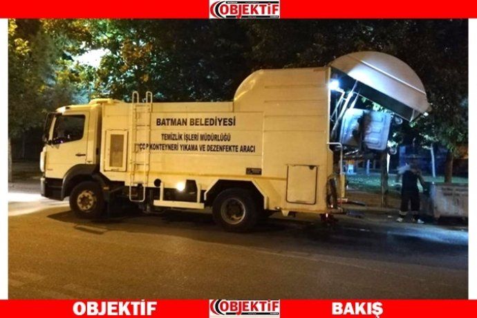 Batman Belediyesi virüsle ve hastalıklarla mücadele kapsamında çöp konteynırlerini yıkayarak dezenfekte etmeye devam ediyor.