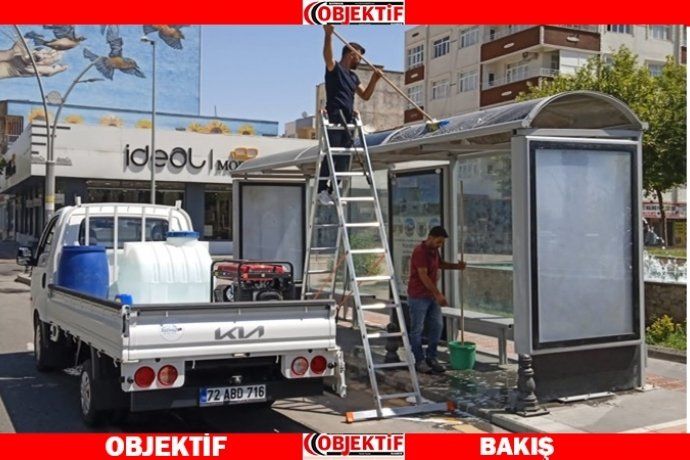 Batman Beediyesi kent genelinde vatandaşların ortak kullanım alanları arasında yer alan otobüs durakları 3 kişilik ekiple köpükle yıkanıp durulanarak temizleniyor. Çalışmalar kapsamında, Batman genelinde toplam 250'ye yakın otobüs durağı yıkanarak temizlenecek. Otobüs duraklarının iç ve dış mekanları ile insan elinin değdiği alanları deterjanlı su ile temizleyen ekipler, çalışmaları 3 günde bitirmeyi hedefliyor.