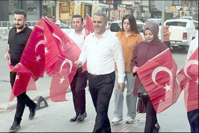 AK Parti Batman İl Başkanı Hüseyin Şansi, kent merkezindeki esnafları tek tek ziyaret ederek, Türk bayrağı dağıttı. İl Başkan Şansi “Cumhurbaşkanımızın liderliğinde terörün bittiği, huzurun egemen olduğu bu güzel dönemde bayram sevinci yaşıyoruz. Bu sevinci, şehrimizin her köşesini ay yıldızlı bayrağımızla süsleyerek taçlandırmak istiyoruz” dedi.