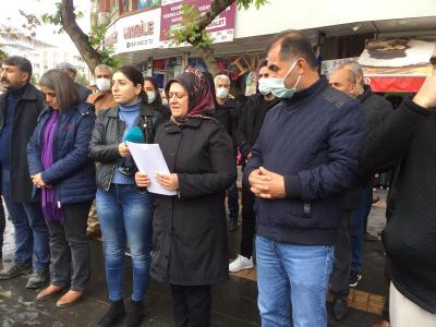 HDP İl binası önünde yapılan açıklamaya HDP Batman Milletvekili Ayşe Acar Başaran, görevden uzaklaştırılan Belediye Eşbaşkanları Songül Korkmaz ve Mehmet Demir, İl Eşbaşkanları ile partililer katıldı.