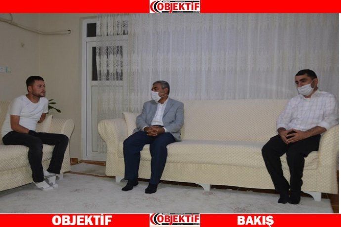 HÜDA PAR Batman İl Başkanı Davut Şahin, beraberindeki heyetle birlikte, 8 ay önce çalıştığı inşaatta yüksek elektrik akımına kapılarak iki kolunu kaybeden 26 yaşındaki Ömer Altun’u evinde ziyaret etti.