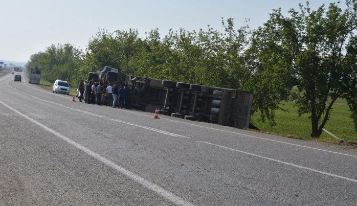 Batman-Bismil Karayolu'nda inşaat malzemesi yüklü TIR'ın devrilmesi sonucu bir kişi yaralandı.
