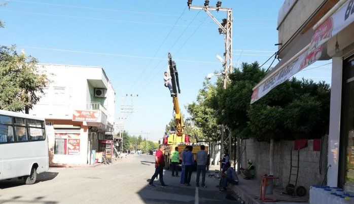 Batman merkeze bağlı Balpınar (Girêsîra) Beldesi'nde DEDAŞ işçisinin, vinç halatına bağlanarak çalışma yapması çevredeki vatandaşları korkuttu.