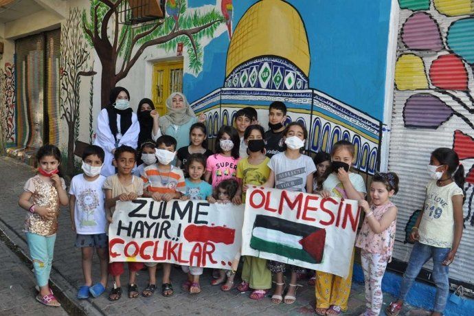 Kudüs’te bulunan Kubbet-üs Sahra resmini çizenlerden Hatice Yargı, “Halk olarak bir nebzede olsa tepki göstermek için mahallemizdeki duvara Kudüs’te bulunan Kubbet-üs Sahra resmini çizdik. 3 arkadaşımla beraber çizimimiz ve resmimizi bitirdik. Filistin’deki zulmün bir an önce bitmesini istiyoruz. Yetkililerden de isteğimiz yaşanan bu zulmü durdurmalarıdır.” dedi.