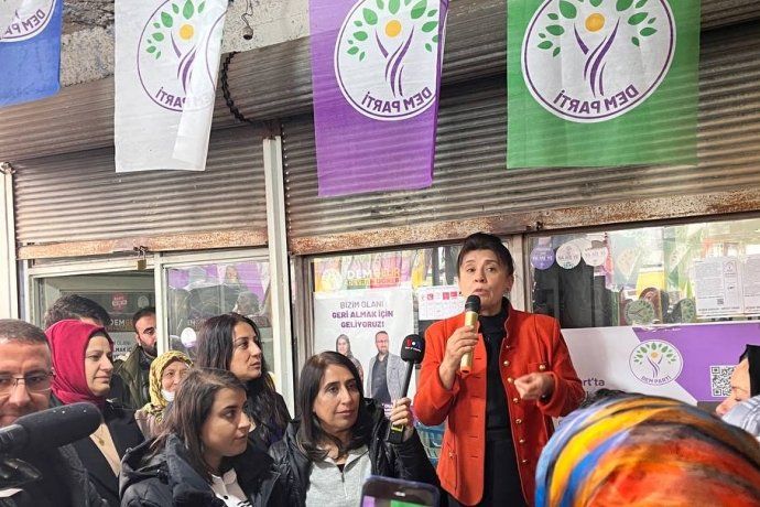 Seçim çalışmaları kapsamında Batmana gelen Leyla Zana yoğun yağmura rağmen kalabalık bir konvoy tarafından Diktepe köyünde karşılandı.