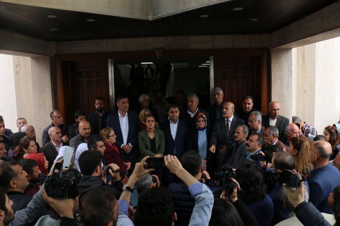 Batman Belediye Başkanlığı mazbatasını alan Belediye Eşbaşkanı Mehmet Demir, görevi devralmak için Belediye’ye Eş Başkan Songül Korkmaz HDP Batman Milletvekilleri Ayşe Acar Başaran, Necdet İpekyüz, HDP İl Başkan Vekilleri Gülcemal Erdinç, İkram İrgi ve yüzlerce kişinin bulunduğu kalabalık bir toplulukla geldi.