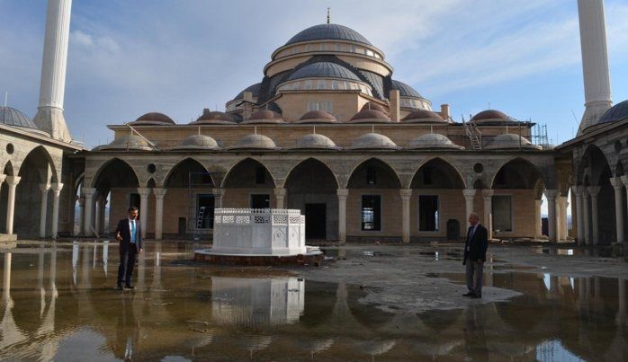Batman'da yaklaşık yarım kalan 10 caminin yardım beklediğini aktaran Erhan, "Üniversite camimizle beraber Batman merkezde yaklaşık 10 camimiz inşaatları şu an devam ediyor. Birçok mahallede merkezi alanlarda cami ihtiyacımız olmamakla beraber özellikle Batman'ımızın kenar semtlerinde sonradan kurulan çok hızlı bir şehirleşmenin getirmiş olduğu bir sonuç itibarıyla camilere çok fazla ihtiyacımız var. Nüfusu çok hızlı artan bir şehir olmamız dolayısıyla bu bağlamda da ibadet alanlarımız, camilerimizin, Kur'an kurslarımızın ve insanlarımızın manevi tatmin açısından dolgunluğa erişebilecek olan Kabe şubelerinin olması gerekiyor. Bu konuda eksiklerimiz var. İnşaatı devam eden camilerimiz inşaatları inşallah süratle tamamlanır." ifadelerini kullandı.