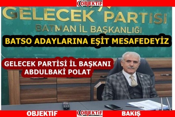 BATSO seçimleriyle açıklama yapan Gelecek Partisi Batman İl Başkanı Abdulbaki Polat, siyasi partilerin BATSO seçimlerinde herkese eşit mesafede bulunması gerektiğini söyledi.
