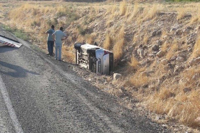 Batman-Gercüş Karayolu'nda meydana gelen trafik kazasında, şarampole devrilerek yan yatan otomobilin sürücüsü, burnu dahi kanamadan kurtuldu.