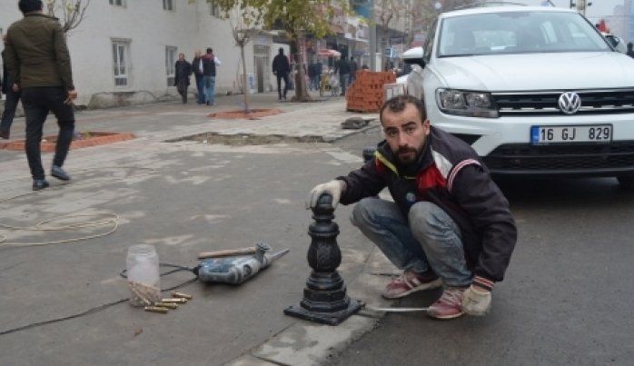 Turgut Özal Bulvarı Vizyon Projesi yol çalışmasının ilk etaplarında da görev almış olan 26 yaşındaki genç işçi Süleyman Öztürk, yapımı büyük oranda bitirilen 3. Etap yol ve alt yapı çalışmasında sınır bariyerleri montaj işini yapıyor