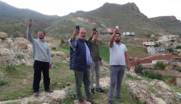 Batman’ın Gercüş ilçesine bağlı Gönüllü köyünde vatandaşlar, cep telefonlarıyla konuşabilmek için ağaçlara tırmanıyor, yüksek tepelere çıkıyor.