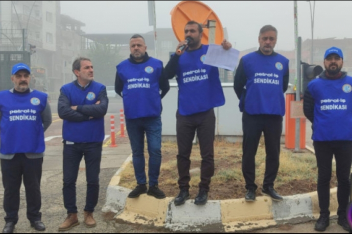 Batman Petrol-İş Sendikası, TÜPRAŞ’ın bazı ünitelerde operatör sayısını azaltmaya yönelik uygulamalarına tepki göstermek amacıyla TÜPRAŞ İpragaz Kapısı önünde basın açıklaması düzenledi.