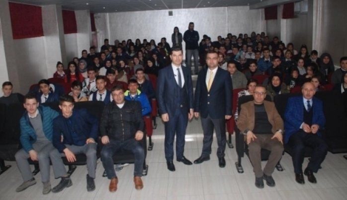 Hüseyin ASLAN, kendinden ve deneyimlerinden bahsederken, “Bir belboy olarak başladığım turizm sektöründe şu anda Real Konak Hotel’in Genel Müdürü ve Genel Koordinatörüyüm. Yani zirveye ulaşmak zorlu bir yol olsa bile ben hedefime ulaştım, sizde hedefinizi belirleyin” dedi. Konuşması esnasında cebinden 50 TL çıkaran ve elini havaya kaldırarak, “Bu paraya kim sahip olmak ister?” dedi. Salonda kısa sürede sessizlik ve birbirlerine bakışan gençlerden, bir genç elini kaldırarak ‘Ben’ dedi. Hüseyin Aslan, elini kaldıran genci yanına çağırarak, kutladı ve “Bu arkadaşınız cesaretli bir girişimci kutluyorum” diyerek 50 TL’yi gence takdim etti. Hüseyin Aslan, konuşmasının sonunda öğrencilerden gelen soruları yanıtladı.  Konferans Salonunda 2 saate yakın sürede gerçekleşen konferans toplu fotoğraf çekimi ile son buldu.