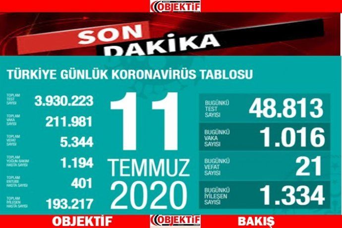 11 Temmuz 2020 Türkiye'nin güncel koronavirüs verileri açıklandı.