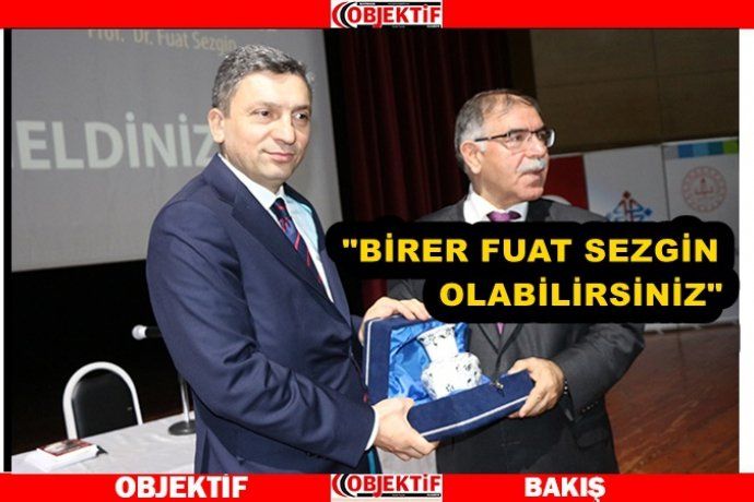 Şahin, “Fuat Sezgin ve onun gibi büyük alimleri birer fener gibi görmek lazım. Yolumuzu aydınlatan birer rehber olarak görmek lazım. Kendimizi birer rol modeli olarak görmek lazım. Bunun için sayın valim yollara düştü. Yıllarca emek veriyor. Emeklilik hayatında günlerini rahat rahat geçirebilirdi ama bir araştırma, kitap yazma ve Fuat Sezgin’i anlatmayı kendisine misyon edinmiş. Siz kendinize bir gelecek, rota ve istikbal çizmezseniz ve de bir istikamet belirlemezseniz ne okuduğunuzun, ne çalıştığınızın ne de ürettiğinizin bir anlamı olmaz. İnsan yüksek değerleri olan bir varlıktır. Merhum Fuat Sezgin bunun büyük bir örneğiydi. Kendisi bir insan hayatı açısından uzun sayılabilecek bir ömür yaşadı ama neticede bıraktı gitti. Bugün hala onu konuşuyoruz ve konuşacağız. Çünkü eserleri ile yaşıyor. Sizlerde öyle olun” dedi.